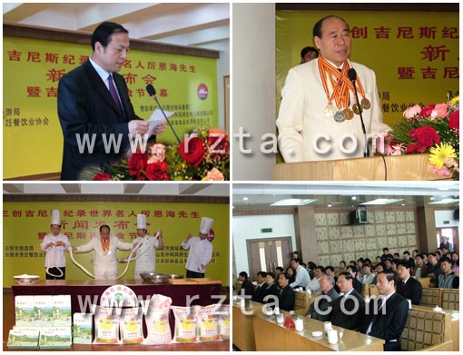 为推动日照烹饪餐饮业的发展,提高日照餐饮技术水平,日照市旅游局和日照市烹饪业餐饮协会联合邀请世界吉尼斯名人厉恩海先生来日照展示药膳拉面绝活。自5月19日开始世界吉尼斯拉面正式落户金海花园大酒店。市领导原政协主席王家政、政协副主席傅瑞荣、旅游局局长柏峰、副局长张荣英、纪检书记时坤吉出席观看特技表演。