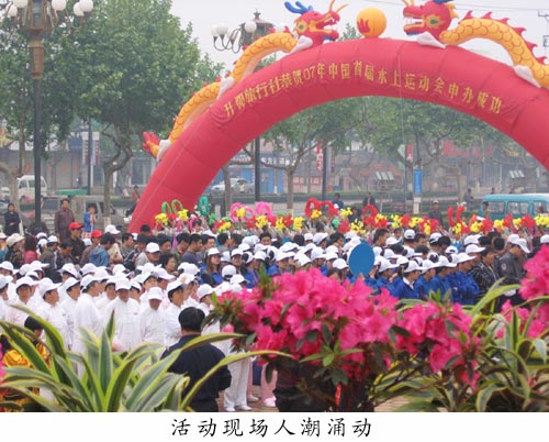 “商行杯”2005年日照市全民健身月活动启动仪式,暨“迎世帆赛”•助威07年首届中国水上运动会万人百米长卷签名活动,5月21日上午在我市信合广场隆重举行.