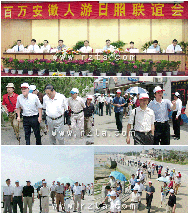 6月4日至6日,此次活动的序幕——“百万安徽人游日照”考察活动在日照展开。由安徽30多家国际国内旅行社和8家新闻媒体组成的60多人考察团走进日照,感受日照海滨的魅力。4日下午,日照市旅游局为考察团隆重举行欢迎仪式,山东省旅游局机关党委书记王元生、国内市场开发处副处长霍立志,日照市委副书记、日照市旅工委主任徐学武,日照市人民政府副秘书长来永明,日照市旅游局局长柏峰、副局长王立新出席参加会议。