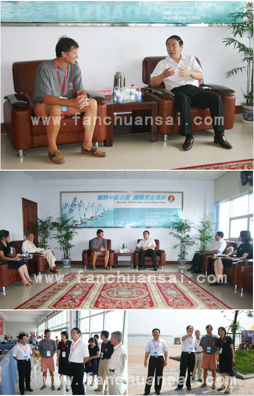 2005年国际欧洲级世界帆船锦标赛正式开幕前夕,来自世界各地的赛事国际官员相继抵达日照。8月26日上午,日照市副市长解世增接见了来自西班牙的国际欧帆联副主席保罗•迪保特等一行。 在友好、欢快的气氛中,宾主进行了亲切的会谈。解世增详细地介绍了世帆赛的前期筹备情况。解市长说,截至目前赛事筹委会、组委会召开的会议达九次以上,赛事的组织、宣传、器材及场地准备充分,运动员的食宿、保卫、安全等问题已做周密安排,赛事开幕式及晚会等相关活动安排妥当。为配合世帆赛的举办,世界帆板精英赛、国际游艇展览会、山东省健美操比赛等一系列活动在赛事期间同步举行。 保罗•迪保特说,对日照市上下营造的赛事氛围及全市人民对帆船赛的热情从心底表示感动,也更加坚定了赛事成功举办的信心,赛事必将加深所有官员、运动员对日照的美好印象,日照市精心打造的 “水上运动之都”这张城市名片已经初显。同时保罗•迪保特还对日照人民的友好及热情表示感谢。 会见后,保罗•迪保特一行在解市长的陪同下共同参观了大赛组委会办公室及相关配套设施。