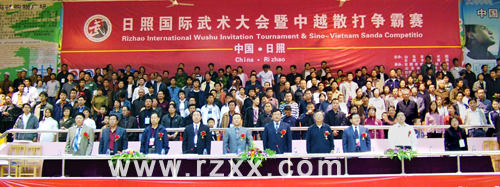 组委会名誉主任、日照市副市长谢世增同志致辞,国家武术运动管理中心副主任王玉龙同志讲话。会上进行了精彩的开幕式表演。
