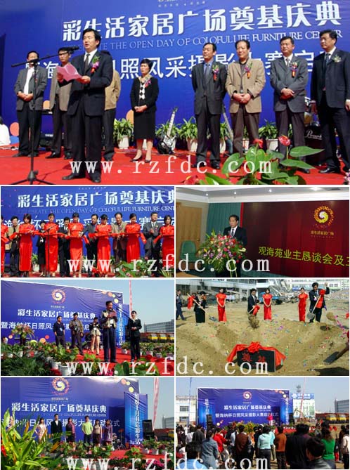 缤纷十月,开启彩生活。10月15日上午,由日照海纳集团投资开发的观海苑三期“彩生活家居广场”奠基仪式暨海纳杯日照风采摄影大赛启动仪式隆重举行。日照市副市长万同,市政府副秘书长胡建云,东港区区委副书记窦更勤,东港区副区长王坤英,石臼街道党工委书记刘冰,市建材商会会长徐广松,海纳集团董事长郭苏泉等领导出席了奠基仪式。副市长万同致贺词,建材商会会长徐广松发言,海纳集团董事长郭苏泉讲话。 奠基仪式场面异常火爆。乐队激情伴奏,歌手尽情演唱,模特精彩服装展示吸引了大批市民驻足观看,不时博得阵阵掌声。与此同时观海苑业主恳谈会及三期推介会在日照大酒店胜利举行。 彩生活家居广场位于日照市黄海二路、黄海三路、海滨五路交汇处,地处日照市东部新兴商圈,踞守原观海苑家居建材商圈核心,扼守新城市商业发展咽喉地带,日照火车站、长途汽车站近在咫尺,区位价值显赫。率先引入国际流行的一站式购物理念,营造高品位、时尚化、五星级的购物环境,将成为日照集名优建材、品牌家具、欧陆灯饰、时尚布艺、家居饰品、家庭用品、床上用品、家装设计于一体,满足客户家居消费一条龙服务的最具品牌的专业建材家居购物中心。彩生活家居广场的隆重揭幕,是继海纳集团投资建设的观海苑一、二期工程之后的又一次大手笔巨作,其未来发展前景以及将给日照,乃至山东省的家居、家饰业带来的巨大意义将不可限量。