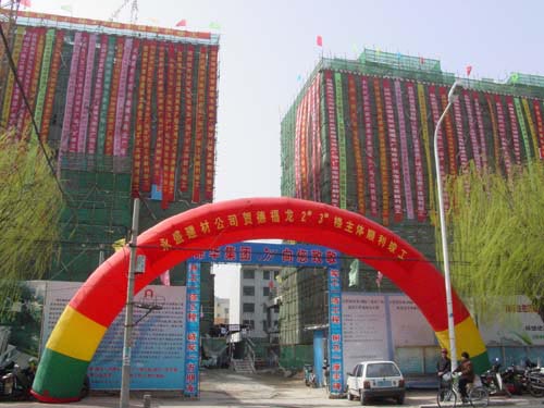 3月29日,在这个春光明媚、生机勃勃的的春日,在阵阵的礼炮声中德福龙商业住宅楼北区圆满封顶,二期工程南区隆重开盘。德福龙商业住宅楼是德福龙集团进军房地产业第一个项目,从去年开盘到今年顺利竣工是德福龙房地产业一个新的进展。 在封顶仪式上工程部辛经理介绍到:在开工以来他们内抓管理建设、外抓形象建设、严格操作每个环节使工程顺利进行。在房地产业建设中争创“泰山杯” 德福龙房地产业是日照房地业的领头军。德福龙商业广场位于日照兴海路和正阳路,整个小区分两部份、占地20多亩、总面积30000多平方米,是德福龙集团、日照德福龙房地产开发有限公司倾情为日照人民在老城打造的最高档配套精品楼盘小区,共一百六十套,现以售一百三十八套。德福龙(国际)商业广场以其鲜明亮丽的色彩建筑,270度大型落地玻璃景观,屋顶飘逸的流动设计,体现着小区的高档次,成为老区陈旧建筑群中一道亮丽的风景线。