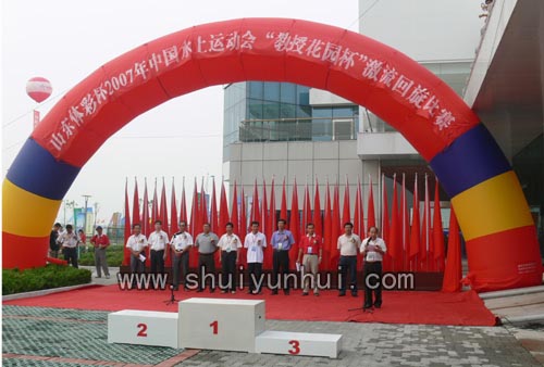 精彩刺激的激流回旋比赛于9月3日下午顺利闭幕.国家体育总局水上运动管理中心奥运主办主任刘建勇,国家体育总局水上运动管理中心项目主管万红军,激流回旋比赛总裁判长徐刚,山东省体育局综合业务处副处长谈文新、水运会组委会竞赛部执行部长刘家坤、水运会组委会资源开发部执行部长丁明春,市体育局副局长王子亮、市体育总会副主席申家新、市体育局副局长卜文利,山海天城建集团副总经理金博,辽宁省海校校长、辽宁省水上运动管理中心主任吕鹏以及全体运动员、教练员和裁判员出席了闭幕式。闭幕式由丁明春主持,万红军致闭幕词.