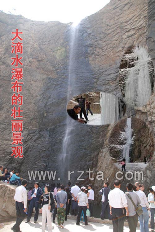 七连山境内景观不胜枚举,而最具代表性的景观就要数——有着鲁东南第一瀑布称号的大滴水瀑布了。山间常年流水,千条水溪汇成河流,而形成了大滴水的水景壮观,大滴水常年冲刷着大地形成深渊,使人们联想起了古人“洞府深深映水开,幽花怪石白云堆”的诗句。一到汛期,瀑布连天,便成了“银河落九天”、大珠小珠落玉盘的景象。寒冬一到,飞流直下的瀑布,便成为悬挂在悬崖峭壁上的冰川,瞬间化为玉肤冰肌。不管是瀑布还是冰川,大滴水都是如诗如画、如梦如幻的胜景。