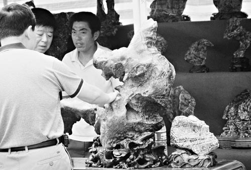 7月12日,为期10天的“2008迎奥运日照市奇石古玩文化艺术品博览会”在市博物馆广场开展。 来自全国各地的上千件奇石珍品布满整个会场,为日照市民奉上了奇石盛宴。据悉,本次展会为满足市民的不同收藏需求,古玩、玉器、翡翠、水晶、根雕、书画等艺术珍品同时展出。