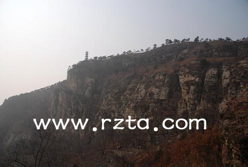 龙凤塔有七层,26米高,每层五个面。听朋友介绍说,每个面都是一块完整巨大的大理石块,全部是人力扛上去的。大家不禁围着塔的四周欣赏起来。塔的每一面上都刻满了龙和凤,整个建筑雄伟而又壮观,让人不能不赞叹劳动人民的智慧和力量。龙门崮山顶处一悬峭壁,顶端有三块耸立的巨石,形似石门,其中有一神秘圆洞,朋友说这就是久传盛名的“龙门”。相传,很久以前一年适逢二月初二,这天上午突然电闪雷鸣,石破天惊,龙门崮悬崖峭壁的三石门徐徐而开,一条巨龙从门中腾空而起,这便是东海龙王鳌广,后来便有了“二月二,龙抬头”的说法。此情景恰巧被山脚处一牧羊人发现,被龙王点击成石,而永远与山相伴。朋友还讲述了李半仙墓、凤凰落垛不落崮、孙悟空学艺、神茶等众多传说,个个美丽动听,令人遐思。