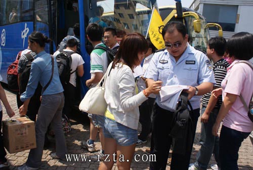 8月28日,日照市交通局、日照市旅游局的执法检查人员在火车站附近的停车场和各大旅游景区对旅游客运大巴进行了检查。交通局人员主要检查旅游客车是否具有道路运输管理机构核发的包车客运标志牌,按照约定的时间、起始地、目的地和线路运行,并持有包车票或者包车合同,是否按班车模式定点定线运营,不得招揽包车合同外的旅客乘车;是否具有道路运输管理机构核发的包车客运标志牌严格审查道路客运企业资质、道路客运从业资格、承运人责任险、车辆营运手续、驾驶员配备、车辆运输安全条件和车辆GPS定位情况。