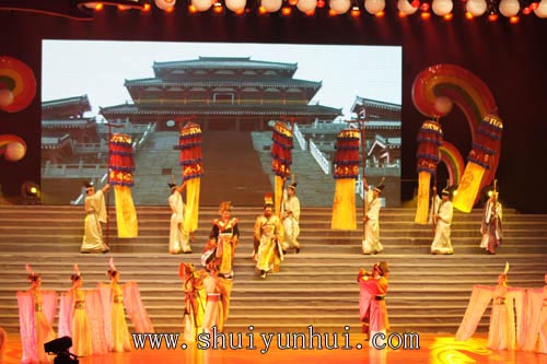 9月8日晚,2010年中国水上运动会闭幕式大型文艺演出在日照会展中心隆重举行。本次晚会以《水运之恋》为主题,从运动员的视角,分五个篇章描绘了日照这座“日出初光先照”的美丽城市留给他们的深刻印记,并用寄往不同城市、不同人物的明信片,串接起一份份如阳光般温暖的感动、如大海般蔚蓝的眷恋,表达着对这座充满朝气的城市的未来最隽永、最灿烂的希冀和祝福。