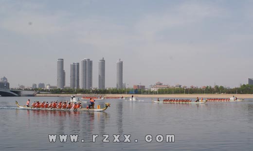 5月14日,日照市第一届全民健身运动会“2011日照临沂龙舟公开赛”在日照奥林匹克水上公园龙舟码头开赛,来自日照、临沂的13支代表队展开了精彩对决,吸引了诸多市民观看。