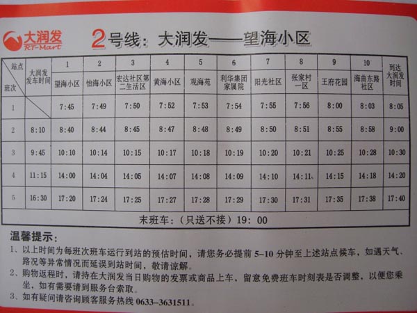 大润发班车路线图(2011年08月20日)