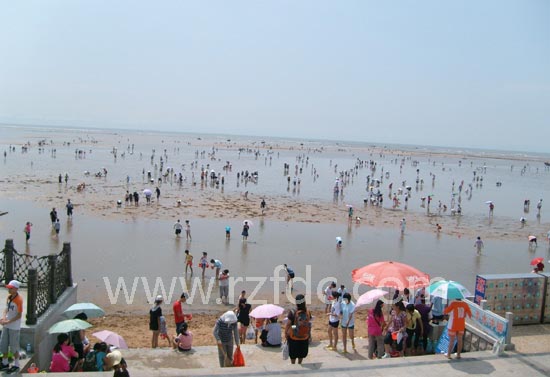 刘家湾赶海园拥有5.4公里长黄金海岸线。落潮时有1.3万亩潮间带,滩平沙细,面积广阔,盛产100余种贝类和蟹类。园区突出了海洋文化,反映了地方民俗风情,适应了现代人返朴归真、回归自然的心理追求,是认知大海、感知大海、体验渔家生活的最佳去处。被誉为“亚洲最大金沙滩、中国第一赶海园”。 在这里,万亩潮间带海滩,坡平浪缓,海产丰富,每12小时潮涨潮落一次,潮落尽,让出宽达400多米的滩涂,成为天然的海水游乐场,充满闲情意趣。