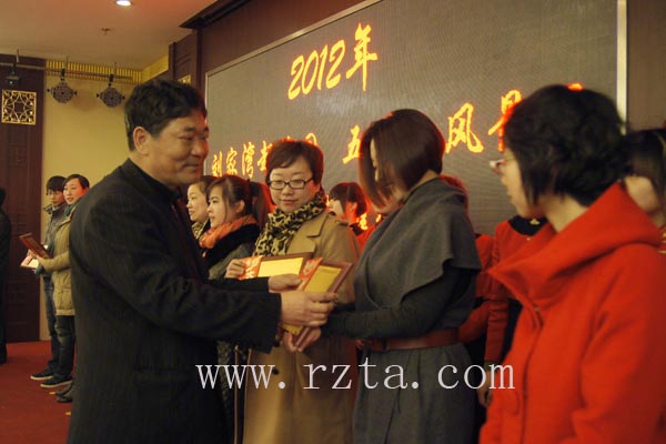 日照市旅游局副调研员、旅行社协会会长孙开宏为获奖旅行社代表颁奖