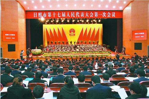 3月20日上午,日照市第十七届人民代表大会第一次会议在市会展中心隆重开幕。中心会堂内华灯璀璨,鲜花吐艳,主席台帷幕中央国徽高悬,10面鲜艳的红旗分列两侧。来自全市各行各业、各条战线的人大代表肩负全市人民的重托,汇聚一堂,共绘建设海洋特色新兴城市的宏伟蓝图。 大会执行主席杨军、李同道、周惠平、黄金华、侯成君、钱焕涛、张玉佩、梁云爱、薄明、高丽萍、万志新、解学文、盖卫星、刘守亮、马强在主席台前排就座。李守民、孙海亭、刘加顺在主席台就座。 上午9时,杨军宣布大会开幕,雄壮的国歌声在会场内响起。在336名到会代表的热烈掌声中,市长李同道代表市政府向大会作政府工作报告。报告共分四个部分:一、本届政府工作回顾;二、今后五年的奋斗目标;三、2012年的政府工作;四、加强政府自身建设。 李同道说,本届政府履职的四年,是我市改革发展进程中极不平凡的四年,我们经历了百年不遇的国际金融危机冲击,经受了节能减排的重大考验,日照发展历史性地进入国家战略。面对挑战与机遇交织的复杂局面,市政府紧紧依靠省委、省政府和市委的坚强领导,依靠市人大、市政协的监督支持,依靠全市人民的共同努力,认真落实科学发展观,坚持一切为了发展、一切为了人民,深入实施“四大战略”、“双轮驱动”,抢抓机遇、攻坚克难、开拓奋进,全市经济社会发展取得了重大成就。全市生产总值突破千亿元大关,从2007年的629.6亿元增加到2011年的1214.1亿元,年均增长13.4%;地方财政收入68.5亿元,是2007年的2.4倍;进出口总值从57.6亿美元增加到207.6亿美元,跃居全省第三位,跻身全国外贸百强市;实现规模以上工业增加值727.6亿元,固定资产投资880.7亿元,社会消费品零售总额365.4亿元,分别是2007年的2.2倍、2.4倍和2倍;港口货物吞吐量实现双亿吨跨越,从1.3亿吨跃升到2.5亿吨,相当于四年再造了一个亿吨大港;城镇居民人均可支配收入达到20098元,农民人均纯收入8756元,分别是2007年的1.5倍和1.6倍。 李同道说,过去的四年是全市经济快速攀升、综合实力显著增强,转型升级进程加快、优势产业迅速崛起,基础设施全面提升、城乡面貌显著变化,各项改革深入推进、对外开放不断扩大,人民生活明显改善、社会事业全面进步的时期。今天的日照已经站在新的历史起点,展现出更为广阔的发展前景! 李同道说,过去四年我市经济社会发展取得了显著成绩,但前进道路上仍然面临诸多矛盾和问题。对这些问题,我们一定高度重视,采取有力措施,认真加以解决。 李同道说,未来五年,是我市抢抓历史机遇,推动科学发展,提升综合实力,加快建设海洋特色新兴城市的关键时期。政府工作的总体要求是:高举中国特色社会主义伟大旗帜,坚持以邓小平理论、“三个代表”重要思想为指导,深入贯彻落实科学发展观,以科学发展为主题,以加快转变经济发展方式为主线,以造福日照人民为根本目的,抓住用好国家战略机遇,坚持“双轮驱动”、“三个集约”,深入实施“四大战略”,构建完善“四大体系”,着力打造蓝色日照、幸福日照、平安日照、生态日照、文明日照,全面提升综合实力、创新能力和发展活力,加快建设海洋特色新兴城市,奋力开创率先创新优质发展的新局面。经济社会发展的主要目标是:综合实力显著增强;转方式调结构迈出实质性步伐;城市化水平明显提高;社会更加文明进步;人民生活更加幸福。 对于2012年的政府工作,李同道说,今年是新一届政府工作的开局年,做好今年工作意义重大,影响深远。我们要深入贯彻省、市党代会精神,牢牢把握主题主线,坚持“稳中求进、好中求快”,着力做好稳增长、强蓝区、调结构、控物价、惠民生、保稳定各项工作,以优异成绩迎接党的十八大胜利召开。经济社会发展的主要预期目标是:生产总值增长12%,地方财政收入增长15%,进出口总值和实际到账外资均增长10%,规模以上工业增加值增长15%,固定资产投资增长20%,社会消费品零售总额增长16%,城镇居民人均可支配收入和农民人均纯收入均增长12%,居民消费价格指数涨幅控制在4%左右,城镇登记失业率控制在3.5%以内,人口自然增长率控制在4.9‰以内。保持经济平稳较快增长,继续把大项目建设作为经济工作的重中之重,强化投资拉动,积极扩大消费需求,加大对企业的扶持力度,强化财政金融支撑保障作用;毫不放松地做好“三农”工作,加快发展现代农业,加强以水利为重点的基础设施建设,加快小城镇建设,突破发展县域经济;打好转方式调结构的主动仗,调强优势主导产业,调快高新技术和战略性新兴产业,调高服务业;提升城市基础设施承载能力,高水准推进城市规划建设,加强综合交通运输体系建设;大力推进开放创新,突出抓好载体建设,保持对外经贸稳步发展;深化重点领域和关键环节的改革,提高科技创新能力;加快推进“生态日照”建设;扎实开展“文化建设年”活动;切实保障和改善民生,抓好11件为民办实事重点项目,让人民群众得到更多的实惠。 李同道说,立足新起点,实现新跨越,必须进一步加强自身建设,坚持执政为民,建设服务政府;坚持依法行政,建设法治政府;坚持务实高效,建设效能政府;坚持清廉节俭,建设廉洁政府。 李同道最后说,面对千载难逢的重大机遇,站在跨越发展的历史节点,我们深感责任重大、使命光荣。让我们紧密团结在以胡锦涛同志为总书记的党中