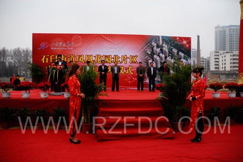 荣安集团董事长刘加楼发表致辞,对本次工程进行了重点介绍。街道党委书记鲁守春和区政府副区长李建富仙后发表重要讲话,表示对项目寄以高度的希望和认可,并宣布凤凰花园北片区安居工程项目开工,在场的各位领导共同为凤凰花园北片区安居工程进行奠基培土,礼花齐放,鞭炮齐鸣,锣鼓喧天,在热烈的氛围中,奠基仪式完美落幕。