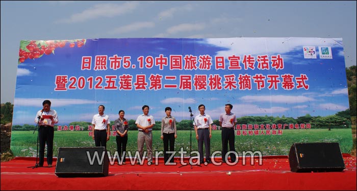 日照市旅游局党组副书记、副局长张荣英宣布日照市5•19中国旅游日宣传活动启动,五莲县第二届樱桃采摘节开幕