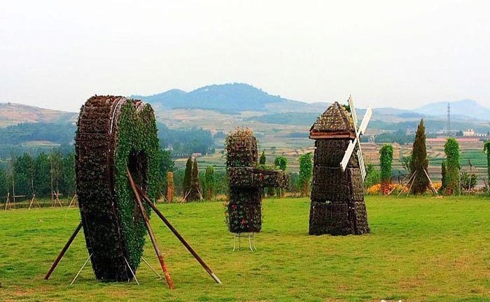 初夏时节,景区的花开的正是绚烂,大片大片的花团锦簇,清风吹过如涌动的花海。景区游人如织,拍摄婚纱照的准新人更是络绎不绝。游客们纷纷沉醉在这“赤橙黄绿青蓝紫”拼接的画面里,贪婪地呼吸着清新的氤氲。远远望去,大片大片的画彩渲染着湛蓝如洗的天空,单纯中充满着迷幻。云淡风轻间,闭上眼,安静地听那花开的声音,听风的呓语,听泉水叮咚,听风车转动,在那一片姹紫嫣红间,感受生命中涌动的活力与际遇。
