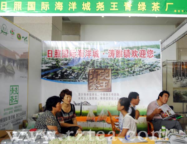 第三届中国日照绿茶节7月20日至22日在日照会展中心隆重举办。 本次绿茶节期间,百余家中外茶企带来佳茗,供市民和游客品尝选购,场面热闹非凡,其中持有老品牌的尧王青茶门庭若市。日照国际海洋城尧王青茶是集茶叶种植、加工、销售、科研开发、浏览观光为一体的中型茶叶加工企业。茶场建于1991年,坐落于物理学家丁肇中的故乡——涛雒镇境内,自有有机绿茶基地200多亩,是“日照绿茶”定点加工企业,采用有机无公害栽培技术,运用国内先进的生产设备,独特的加工工艺。在展会现场,有茶艺师免费烹茶,耳边萦绕古曲弹奏,细细品味茶文化,这让人对日照绿茶的明天更为向往。