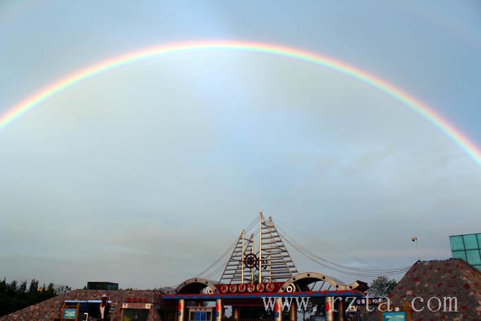 8月27下午6时许,阵雨过后,一道彩虹横跨在刘家湾赶海园景区上空,光彩夺目。约十分钟后,出现双虹奇观,七彩双虹环绕景区,争奇斗艳,与景区交相呼应,自然天成,绚丽多姿。