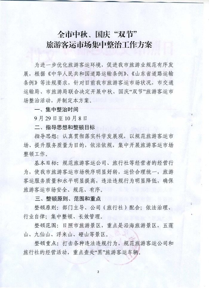 关于印发《全市中秋、国庆“双节”旅游客运市场集中整治工作方案》的通知(2012年09月29日)