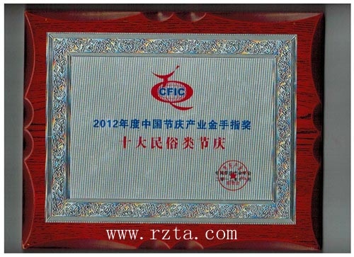 “中国·日照赶海旅游节”荣获2012年度中国节庆产业金手指奖“十大民俗类节庆”奖项(2012年11月16日)