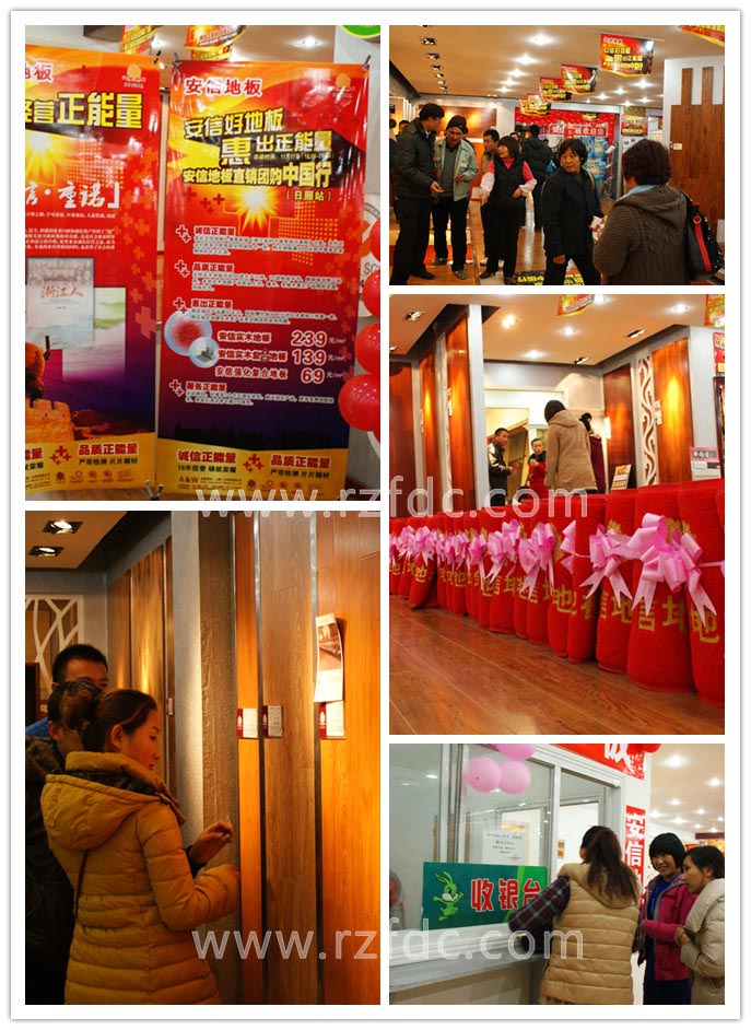 11月17日晚18点到20点,安信地板出厂价直销会在日照九州建材江豪建材城沿街店举行。进店顾客均有礼品赠送,当场购买安信地板顾客就有机会参与抽奖活动。此次活动共抽出一等奖一名,二等奖两名,三等奖三名。