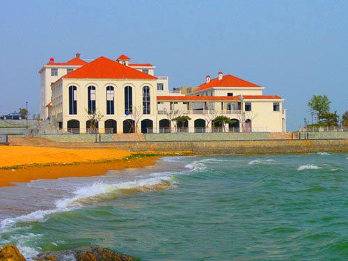 酒店位于日照市岚山区金牛岭路南端、著名的海上碑景区,历史上老码头所在之处,三面临海,景色宜人,可谓观海听涛、休闲度假之佳境。酒店从建筑外观到内部装饰一色的欧式风格,格调高雅、气势恢宏,具有浓郁的艺术氛围。红瓦、黄墙、碧海、蓝天;厅、堂、楼、榭;泳池、喷泉,建筑与文化融汇、人文与自然和谐,在蓝天白云的背景下形成一道亮丽的海滨风景线。