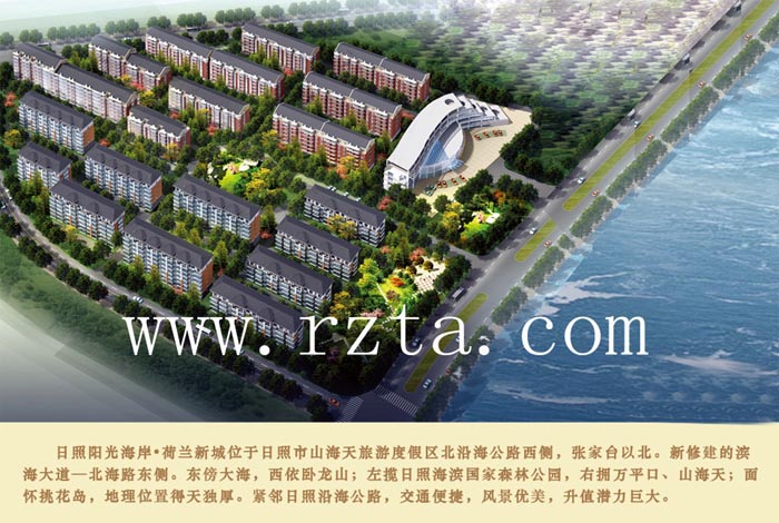 阳光海岸·荷兰新城位于山东省日照市山海天旅游度假区沿海公路西侧桃花岛对过,是具有欧式风格建设的荷兰风情雅居。小区西依卧龙山,东傍大海;左揽森林公园,右揽万平口、山海天;面怀桃花岛。地理位置得天独厚,交通便捷、风景优美,升值潜力巨大。