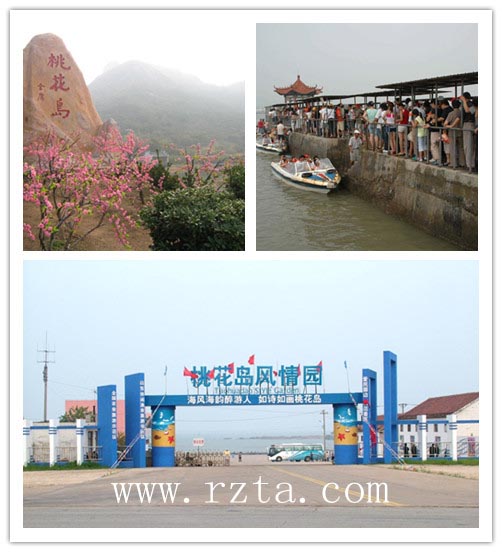 桃花岛俗名:“逃活栏”,位于黄海之滨,太公山下,是日照市内的一个主要旅游景点,该岛隶属于东港区秦楼街道桃花岛村,距岸1000米,海拔406米。桃花岛四周是岩石构造,渐近岛心是绵延数百米的海沙,岛中心有一甜水小泉,岛上各种植物茂盛,繁殖着药用的土元(俗称土鳖),并生长着一种近似桃树的灌生乔木。近年来,人工种植的桃树每到春天鲜花盛开、鸟语花香。