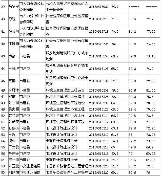 2013年日照市市直事业单位公开招聘总成绩公布(2013年07月19日)