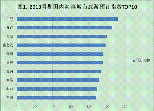 《报告》依据同程网国内自助游预订数据,对国内主要海滨旅游城市自7月1日以来的酒店、景点门票以及自助游套餐的预订情况进行了盘点,并据此对海滨旅游城市目前的旅游预订指数进行了排名,三亚、厦门、青岛、秦皇岛、珠海、日照、北海、大连、海口、宁波十个海滨旅游城市位居全国前十名。