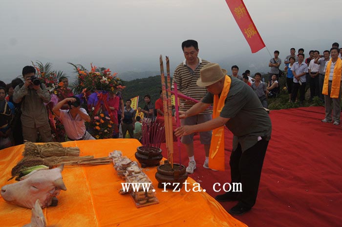 “黄海之滨,天台之上,勤劳的太阳儿女在这里迎接第一缕阳光。” 7月26日(农历六月十九),人们怀着无比崇敬的心情,相聚在涛雒天台山主峰,筑坛设祭、鞠躬敬礼,隆重举行2013日照太阳节祀日大典。