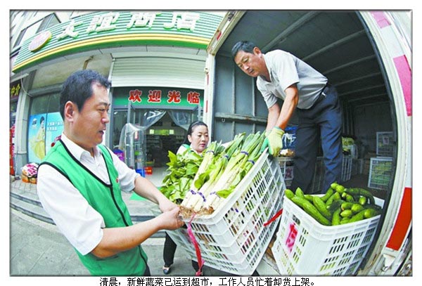 7月19日一大早,日照兴业集团友谊商店四季春城连锁超市的工作人员便在店长庄霆锋的带领下开始了一天的忙碌,卸货、搬菜、充菜、摆水果,验收豆腐、面包、酸奶等当天送货食品,不一会儿,空空的生鲜区便充满了新鲜的诱惑。