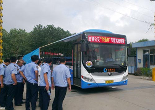 据了解,今年4月日照公交采购了70台宇通ZK6120CHEVG1气电混合公交,经过三个月运行跟踪,结果显示,在空调状态下,宇通混动公交的平均气耗只有22kg/100km,而市场其它同类产品平均气耗为29kg/100km,宇通混合动力客车显著的节气效果令客户非常满意。然而在运营过程中,公交公司同时发现,部分司机在工作过程中依然按照传统车的习惯来驾驶这款混合动力客车。据宇通专业技术人员介绍,混合动力客车因其自身的特点,在驾驶方面与传统客车还是有些不同之处的。如果能掌握驾驶混合动力客车的技巧,不仅驾乘体验更好,而且混合动力客车节能降耗的优势将得到更大程度的发挥。了解到客户的需求,宇通客车迅速与日照公交达成一致意见,决定联合举办“节能减排驾驶竞赛”,以比赛促进司机驾驶技能的提升。