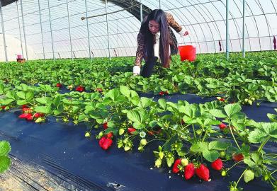 图为一名游客在日照经济技术开发区奎山街道一采摘园采摘草莓。据统计,春节期间,我市共接待游客21.28万人次,实现旅游收入1.33亿元,同比分别增长9%和13%。“好客山东·多彩日照贺年会”活动、民风民俗文化活动、冬日采摘游、冰雪运动、温泉美食等系列活动,有力地拉动了旅游消费。