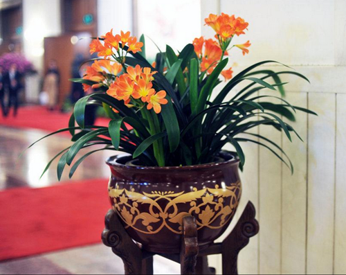2015年3月8日,北京,两会期间人民大会堂内的春花竞相盛开美不胜收。