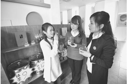 3月20日,游客在岚山区巨峰镇淞晨茶业选购绿茶。近年来,岚山区百里绿茶长廊以打造美丽乡村和生态旅游为主线,一条集吃、住、行、游、购、娱于一体的完整链条已然成型,绿茶产业优势得以最大化发挥,众多的国内外游客慕名前来游玩,为百里绿茶长廊的发展及当地百姓的致富提供助力。