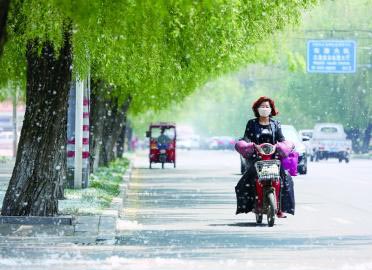4月25日,市民在兴海路漫天飞舞的柳絮中行走。 当日,随着天气日渐晴暖,日照大街小巷成团的柳絮悄然“起舞”,借着风势四处飞舞,如同一场“四月雪”。 过往行人纷纷掩鼻捂口,看似一幅唯美的诗意景象,却让人叫苦不迭。