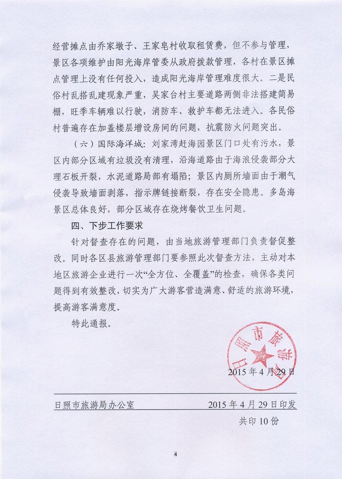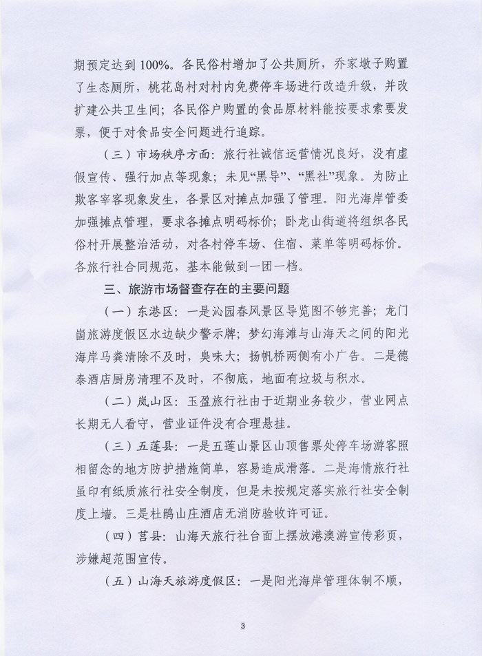 关于“五一”前对全市旅游市场秩序专项督查情况的通报(2015年04月29日)