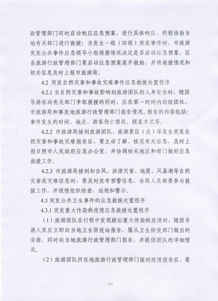 关于印发《日照市旅游突发公共事件应急预案》的通知(2015年04月29日)