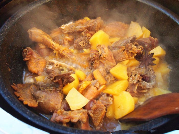 以当地山区野生菌类为主原料,分为鲜菌、干菌两类,主要有粘莪子、金钱菇、松楂、辣莪子、雷莪子、鸭蛋绿、金鸡黄、山耳、地揭皮、松莪、雪菇、栗花等品种,当中以粘莪子最常见,以栗花最为珍稀。山里人用煎、炸、烹、炒、涮等各种办法配以猪肉、鸡肉、辣椒、蒜等佐料,做出丰盛的全菌宴,成为时尚高档宴请菜肴,并流传着“四条腿(猪)不如两条腿(鸡),两条腿不如一条腿(山菌)”的营养俗语。