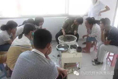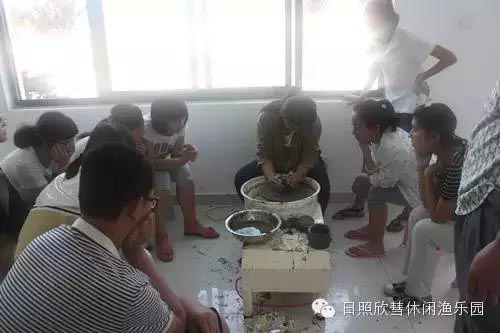 同学们都很认真,自己动手制作黑陶。