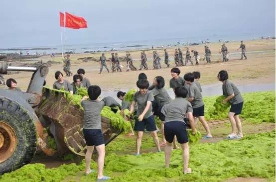 军民一心,共同打浒!小伙伴们来海边玩耍再也不用担心浒苔的问题啦!快来海边撒欢儿吧!