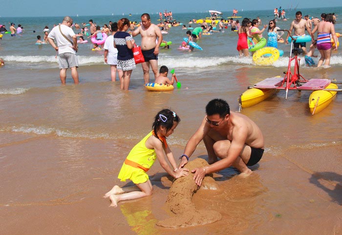 据山东广播电视台新闻中心《山东新闻联播》报道,在烟台、日照等地的海滨浴场,来自全国各地的游客涌到海边,畅享大海带来的清凉与惬意。最受游客欢迎的是水上运动项目,一家老小或骑着水上自行车,踏浪追逐;或乘坐快艇,激情遨游。 据统计,仅周六周日两天,日照万平口景区就纳客15万人次,省外主要以北京、上海、河南等地的游客为主,省内游客则大多来自济南、临沂、潍坊等地。游客们在清凉的海水中,享受别样的轻松和欢乐。