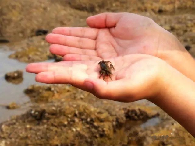 还记得,海边藏着的小蟹子,在手心里把我挠得痒痒的!是不是又把它放回海里了?