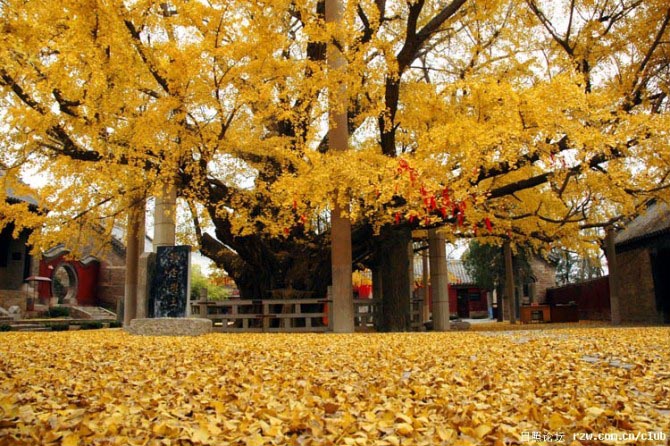 【浮来山银杏黄叶翩翩 天下银杏第一树】