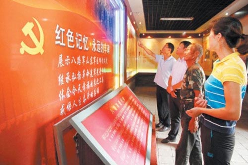 8月27日,居民在参观位于岚山区碑廓镇碑廓二村的八路军山东军区军事工作会议旧址。 据悉,随着中国人民抗日战争胜利70周年纪念日的临近,越来越多的市民走进展示八路军山东军区辉煌战史的八路军山东省军区军事工作会议旧址,重温历史,激发爱国热情。