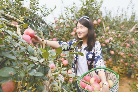 9月19日,东港区三庄镇“苹果乐园”内,市民正在快乐采摘。 近年来,东港区不断提升乡村旅游软硬环境,设立旅游产业发展专项资金1000万元,引导全区乡村旅游向优质化、高效化、集约化迈进.