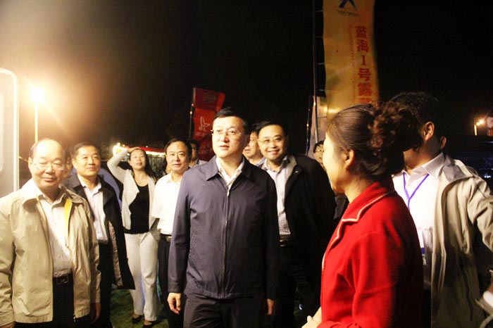 10月9日,日照市委书记杨军、山东省旅游局副巡视员王春生一行在山海天旅游度假区党工委书记王克军、日照市旅游局局长王均波、日照市旅游局调研员张荣英等有关领导的陪同下,视察了蓝海1号露营公园项目。