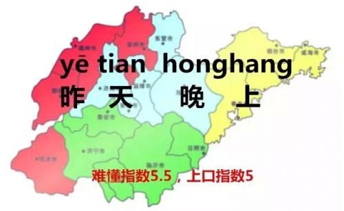 青岛话属于胶辽官话,其特征是舌音比较重。普通话的声调也被削减不少。基本上在某个程度上,要把普通话转成了青岛话,只需把普通话的声调改一改,把第四声保持不变。说青岛话的窍门,就8个字:“一三互换,二四归四”。这样说来,排到第六名我也服!!
